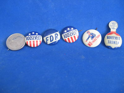 4 Roosevelt Campaign buttons, and one No third Term Pin