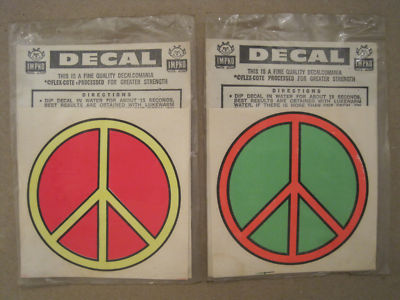 Title (ebay affiliate link): 2 VINTAGE 1970'S IMPKO PEACE SIGN DECALS-ORANGE & GREEN