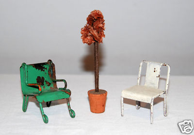 Antique Dollhouse Furniture - Metal Chair Set