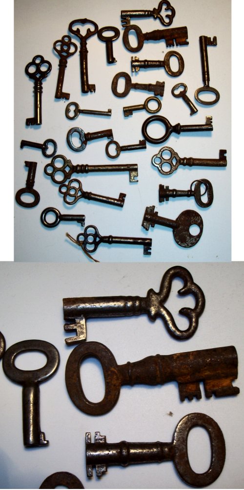 Title (ebay affiliate link): 24 Antique Barrel & FURNITURE KEYS, Paddlock Keys