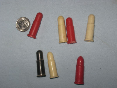 PLASTIC & 1 WOOD CAP GUN TOY BULLITS 2 MARKED LECO USA