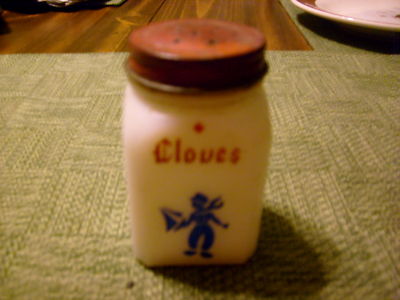 Vintage Milk Glass Cloves Spice Jar Dutch Boy