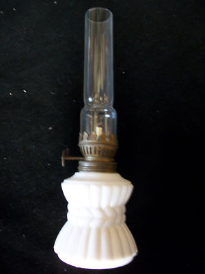 SMALL MILK GLASS OIL/KEROSENE TABLE LAMP