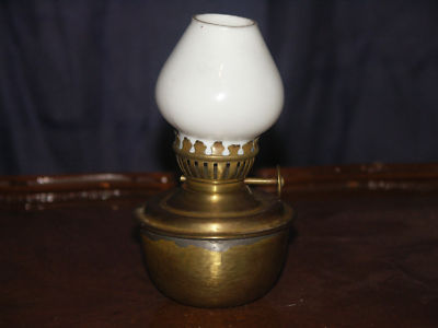Vintage Nursery Oil Lamp - Brass With Milk Glass Shade