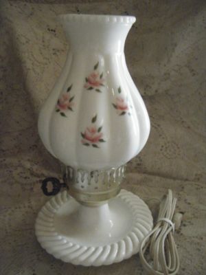 Vintage Milk Glass/Hand-Painted Pink Roses Table Lamp