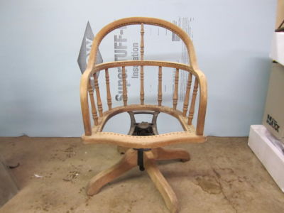 Vintage Oak Cane Seat Swivel Desk Chair