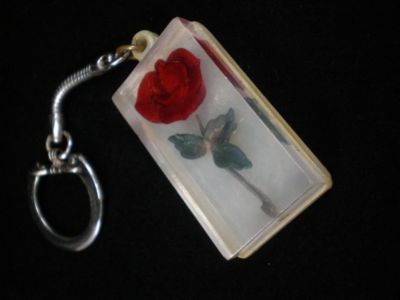 Title (ebay affiliate link): Vtg Reverse Carved Red Rose Lucite ST Key Chain Holder
