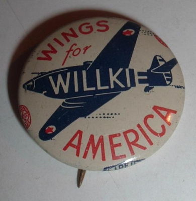 Campaign Button Pinback WINGS FOR WILLKIE - RARE !
