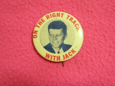 Title (ebay affiliate link): "THE RIGHT TRACK WITH JACK", KENNEDY PINBACK UNION LBL
