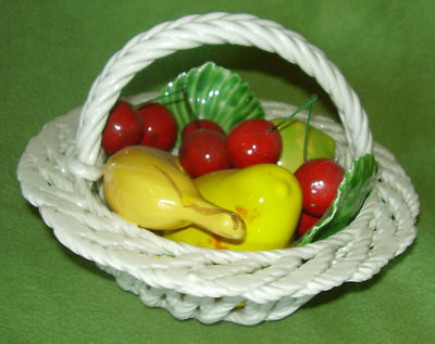 CAPODIMONTE?ITALY CERAMIC?PORCELAIN FRUIT BASKET