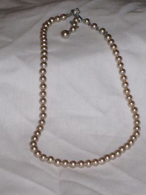 Title (ebay affiliate link): VINTAGE 14" PEARL NECKLACE 4 ANTIQUE BISQUE/CHINA DOLL