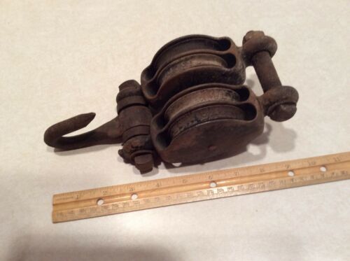 Antique cast iron double barn pulley