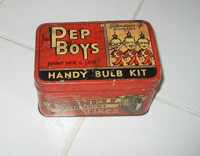 VINTAGE ANTIQUE PEP BOYS HANDY BULB KIT METAL TIN