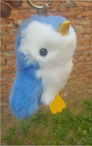 Title (ebay affiliate link): Cute Penguin Handcrafted Real rabbit skin fur toys vintage, blue gift Key chain