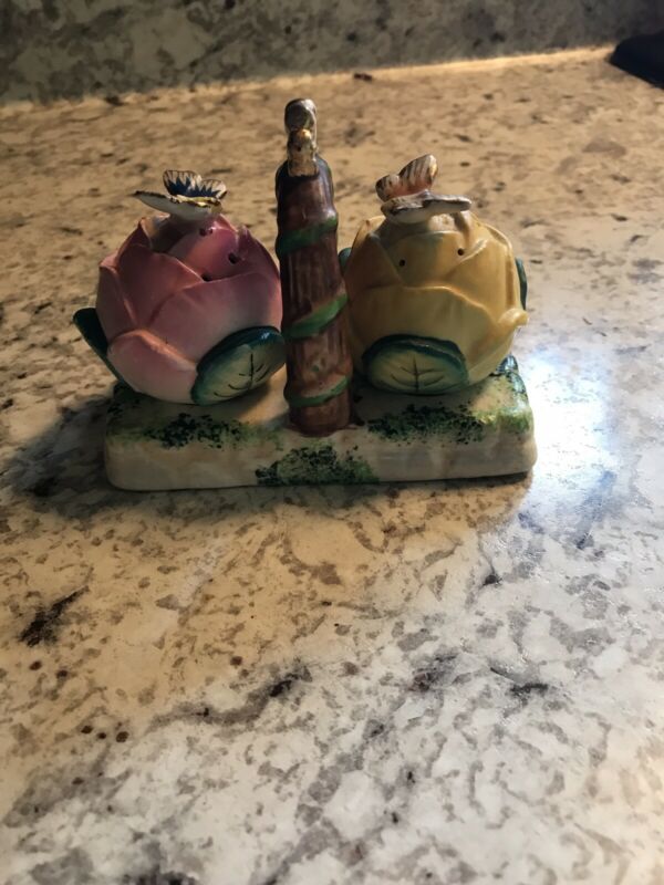 Title (ebay affiliate link): Vintage 1940''s Occupied Japan Salt Pepper Shaker Set Butterfly Flower/Tray