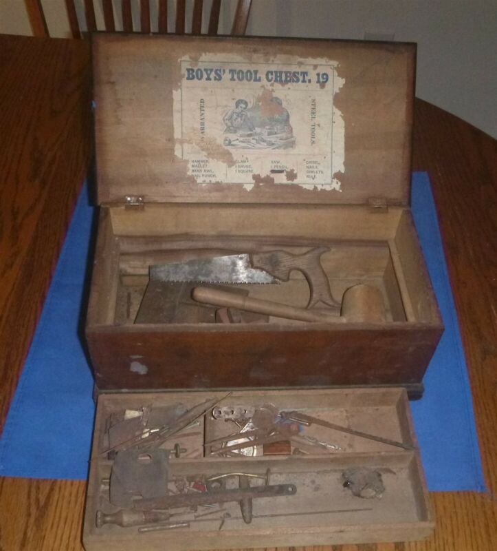 Title (ebay affiliate link): Antique Boys Tool Chest #19 filled with wooden & steel Assorted Tools & bits