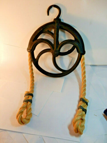 Title (ebay affiliate link): Antique Cast Iron Pulley Old Rustic Farm Tool, Barn Hay Trolley