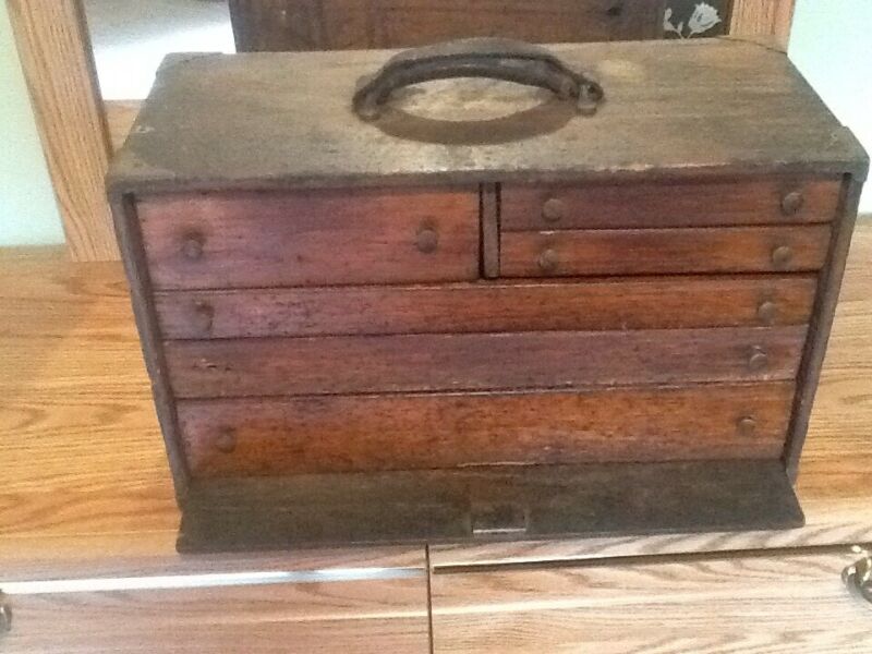 Title (ebay affiliate link): Vintage Machinist Tool Box Wooden Drawers Jewelry box wood chest
