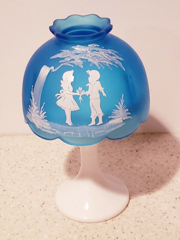 Vintage Westmoreland Frosted Blue Mary Gregory Fairy tea Lite Milkglass Lamp
