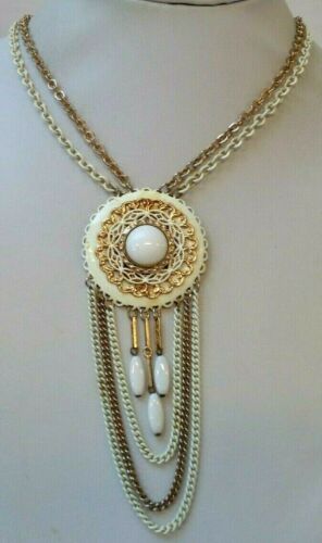 STUNNING VINTAGE ESTATE GOLD TONE MILK GLASS ENAMEL 22" NECKLACE!!! 2480V
