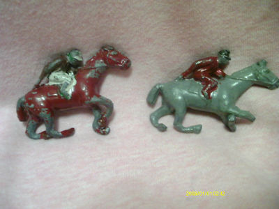 VINTAGE METAL TOY RACING HORSE AND JOCKEY SET OF 2