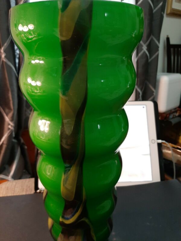 Title (ebay affiliate link): Makora krosno 15" hand made vase made in Poland green glass