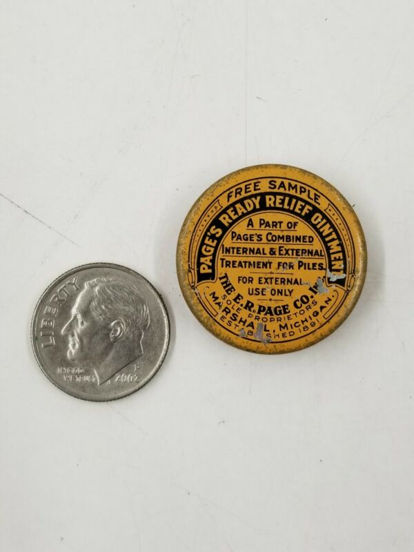 Title (ebay affiliate link): VINTAGE PAGE''S READY RELIEF OINTMENT MINIATURE SAMPLE TIN MARSHALL MICHIGAN