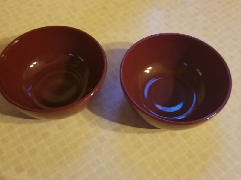Vintage Hazel-Atlas Burgandy Ovide / Platonite 5" Cereal Bowl. Set of 2.