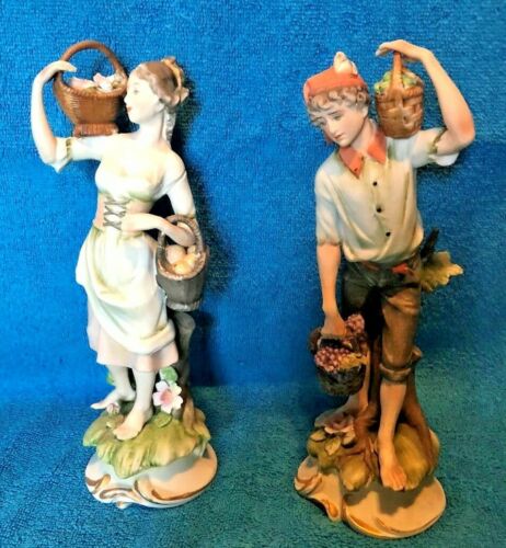 VINTAGE BISQUE FIGURINES HOLDING FRUIT BAKETS MARKED 7781