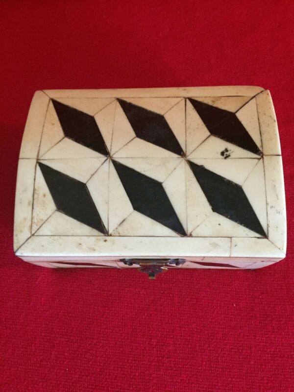 Indian Bone Box, padded blue silk interior