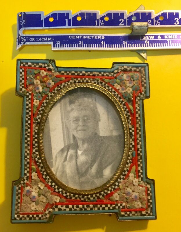 Title (ebay affiliate link): SWEET VINTAGE MICRO-MOSAIC PICTURE FRAME WITH ORGINAL PICTURE OF WOMAN.