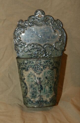Title (ebay affiliate link): Antique Embossed Wall Pocket Brush Comb Open Box Colonial Couple Tin Litho