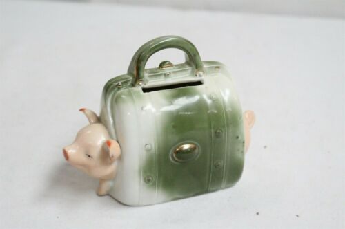 Antique German Fairing Pink Pig Luggage Porcelain Coin Bank