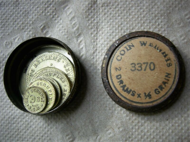 Title (ebay affiliate link): Coin Weights "Newark Scale Works" - USA - Vintage - Nice - Drachms and Scruples