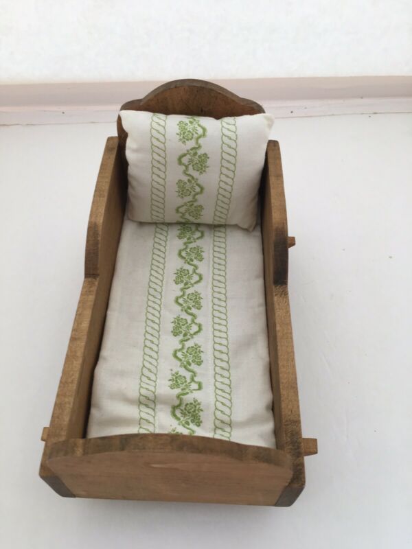 Title (ebay affiliate link): VTG Solid Wooden Rocking Cradle Crib Baby Doll Bear small Bassinet