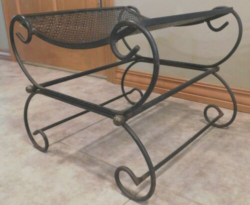 Title (ebay affiliate link): Vntg Mid Century Mod Black Wrought Iron Diamond Mesh Stool Bench Seat w/Cushion
