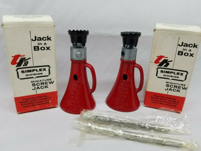 Vintage Red Jack in a Box Miniature Simplex Screw Jacks Lot of 2 NEW OLD STOCK