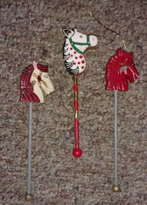 Title (ebay affiliate link): Vintage Wooden Carousel Horse stick Ride 3 horses head Antique Wood toy Lot, HTF