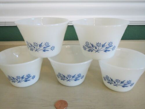 5 Vintage Dynaware Custard Cups Milk Glass Rare Cornflower Blue