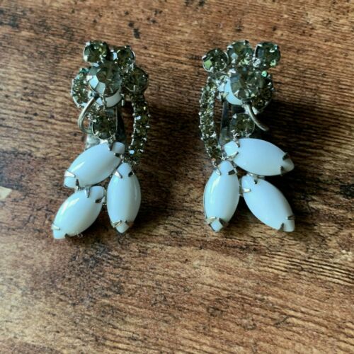 Title (ebay affiliate link): Vintage JULIANA Climber Earrings - Milk Glass, Smoke Rhinestones
