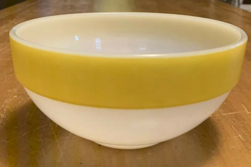 Title (ebay affiliate link): Vintage Fire King Colonial Band Rim 6" Yellow Stripe Mixing Bowl HTF Milk Glass