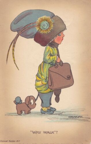 Title (ebay affiliate link): Graeff Girl with large feathered hat, bag with little dog Art Deco