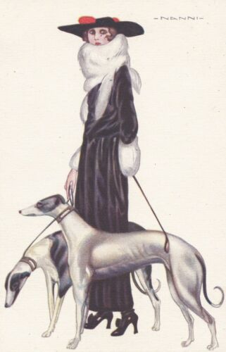 Title (ebay affiliate link): NANNI Lady in black with two greyhound dogs