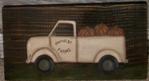 *~*PRIMITIVE*~* HP FOLK ART PRIM TRUCK *~* PUMPKINS * HARVEST FARMS *~* BOARD