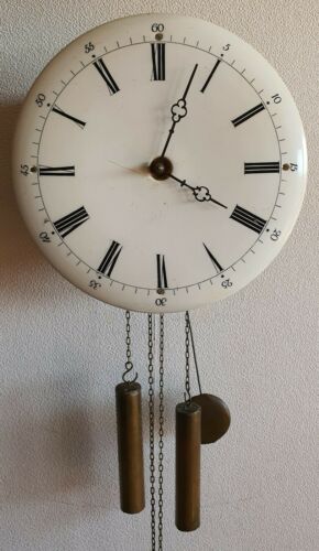 Antique Wall Clock Black Forest Chain Driven Pendule Enamel Dial