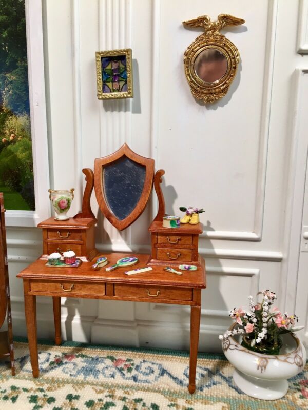 Title (ebay affiliate link): Artisan Made Dollhouse Miniature Mirrored Walnut Vanity Dressing Table Furniture