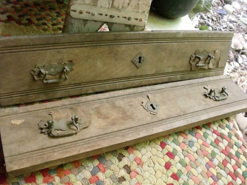 Pair of 1800s Wood Drawer Fronts With Original Brass Hardware Think Repurpose!
