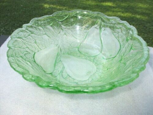 SWEET AVOCADO PEAR INDIANA GREEN DEPRESSION GLASS LARGE SALAD BOWL 9"