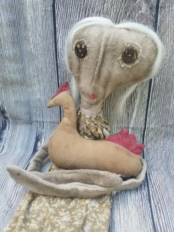 Primitive Handmade Folk-Art cloth Doll with chicken