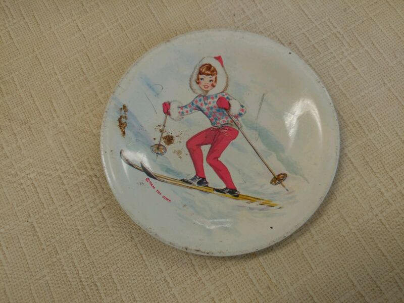 Vintage Tin Lithographic Play Dish Plate Tea Party